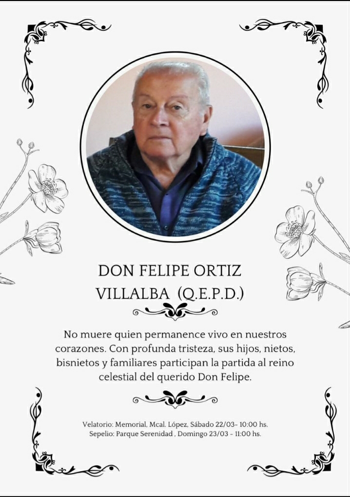 Con mucho sentir, aprecio y con cristiana resignación, nos despedimos de vos Don Felipe. Tu recuerdo perdurará por siempre en nuestros corazones ✨✨✨ |